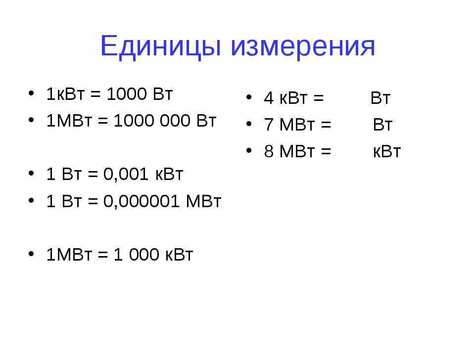 Аналогичным образом можно перевести 60 Вт в киловатты (будет 0,06 кВт), 200, 300 либо 2000 Вт. Надеемся, предоставленные формулы и таблица помогли вам понять, сколько ватт в киловатте электроэнергии, и как правильно перевести единицы измерения мощности от одной к другой.