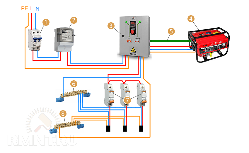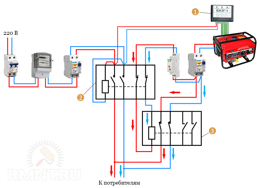 Особенности конструкции резервного генератора позволяют организовать его подключение к питающей линии при пропадании электричества следующими двумя способами: