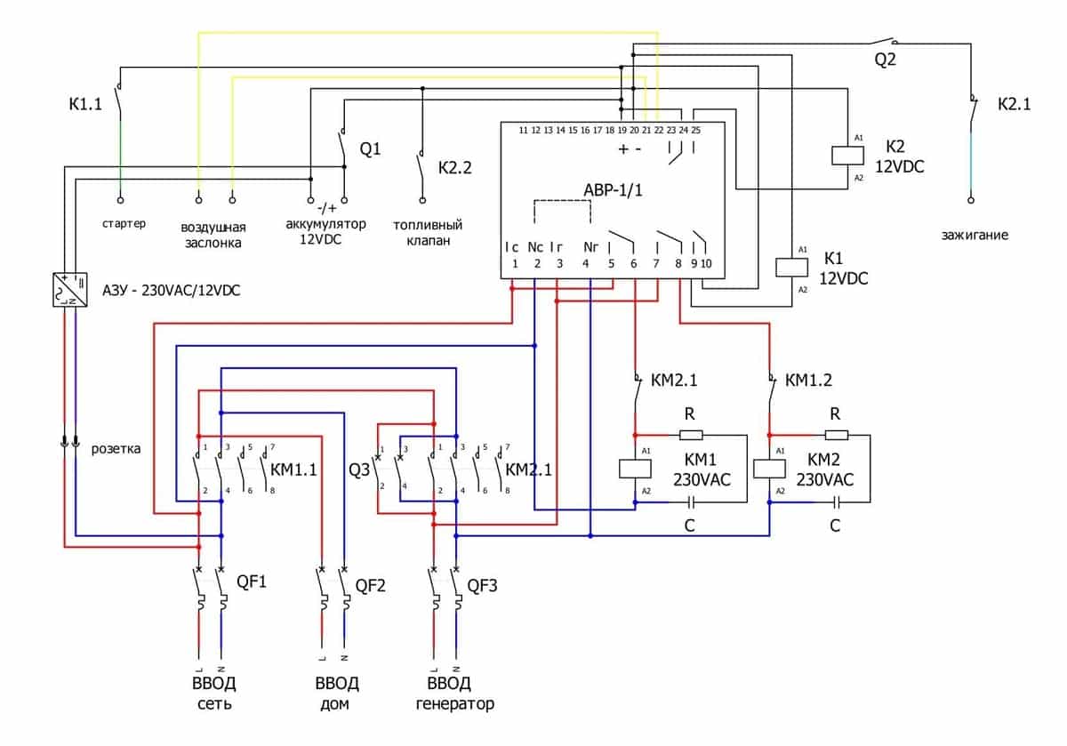Работает все очень просто. Схема АВР на двух контакторах: Надеемся, что эта краткая статья поможет вам собрать и запустить схему автоматического ввода резерва на контакторе, и электроснабжение вашего дома или небольшого предприятия станет бесперебойным.