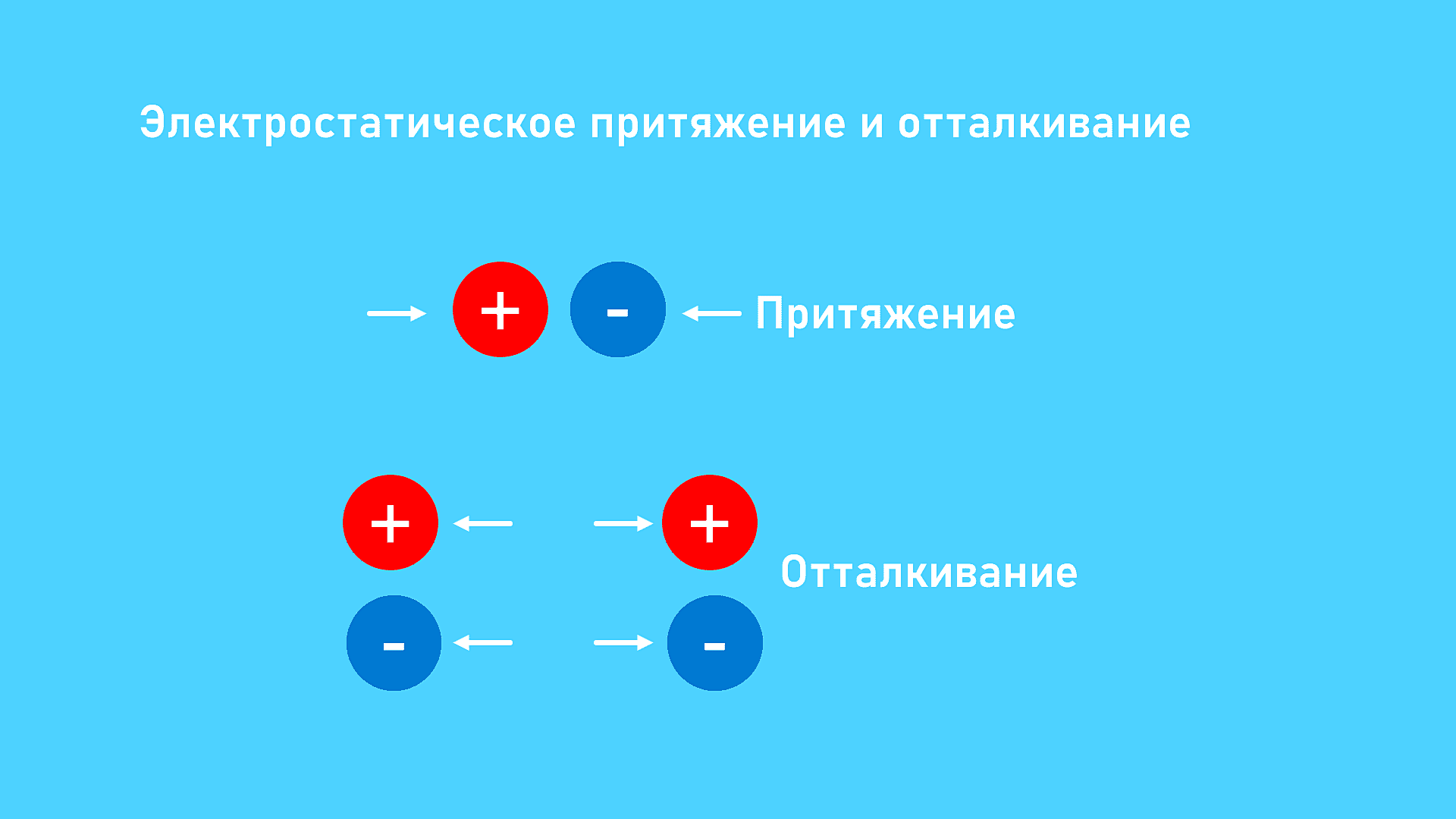 Рис. 3. Иллюстрация электростатического притяжения и отталкивания зарядов