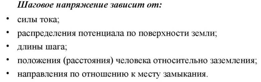 Из физических предпосылок возникновения такого эффекта становится понятным, что величина шагового напряжения зависит от величины удаления от заземлителя или упавшего провода, расстояния между ступнями ног.