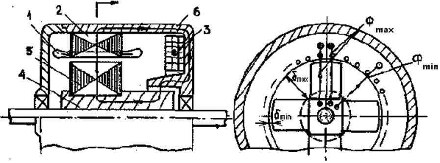а меньшая часть Фmin — через наибольший зазор бmax. (величина потока обратно пропорциональна магнитному