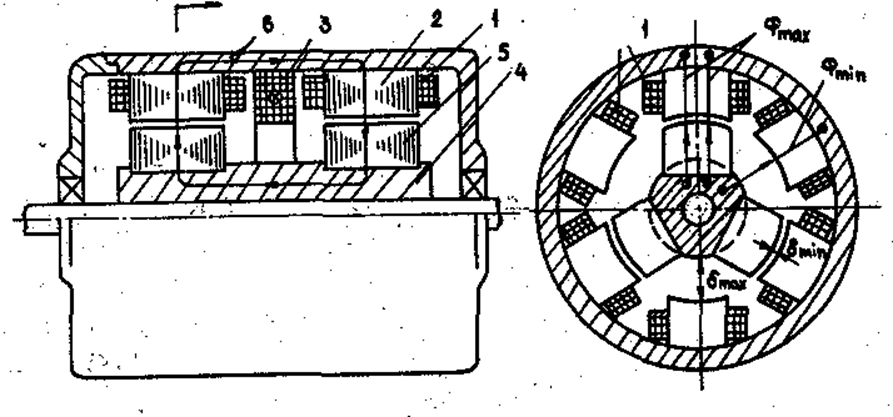 шихтованные выступы сердечника статора. Имеются одна обмотка возбуждения 3 и