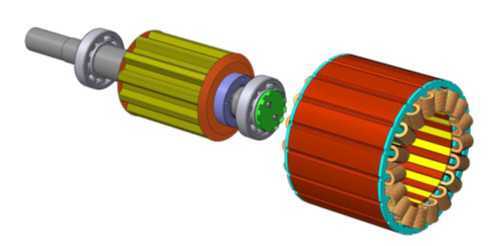 Статор – зубчатый, шихтованный, обмотка в виде катушек, устанавливаемых на зубцы (полюсы) и объединённых в несколько фаз.