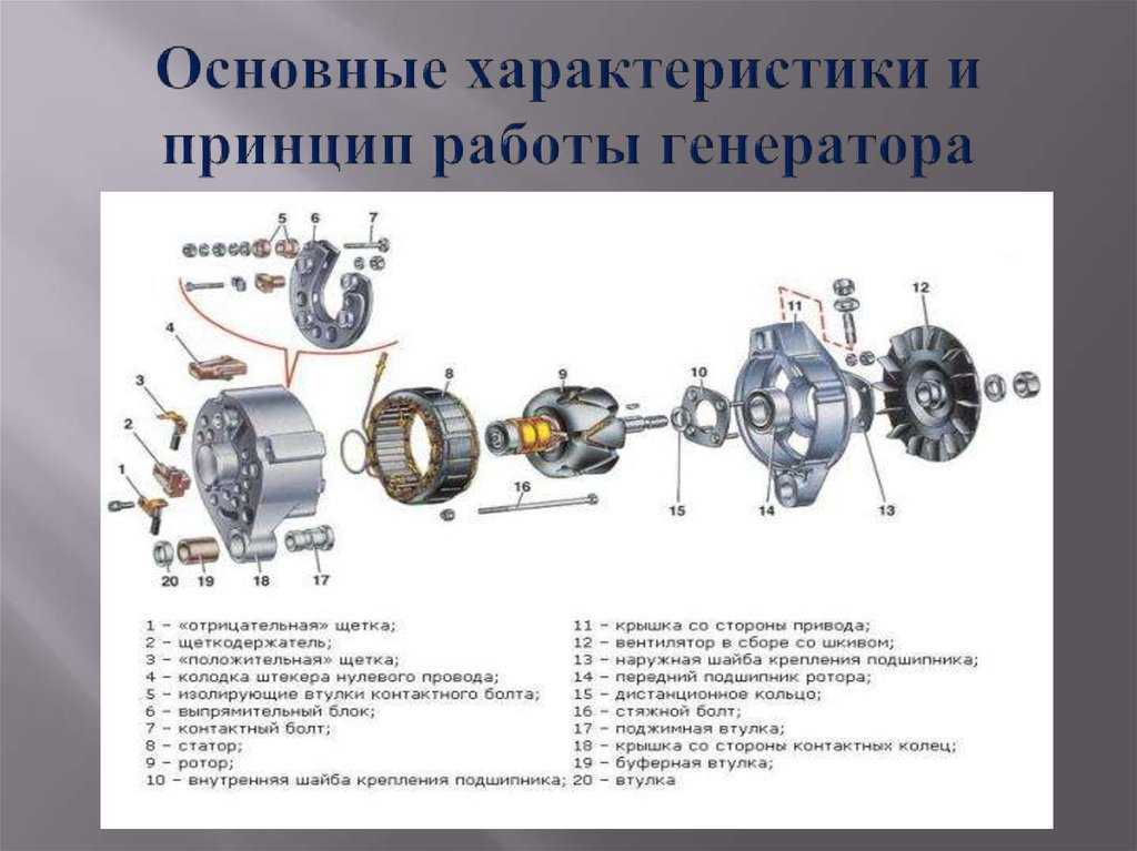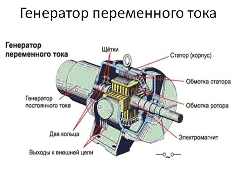 Электрогенератор работает по закону электромагнитной индукции – когда при пропускании переменного магнитного поля через неподвижный проводник возникает ток. Состоит агрегат из вращающегося от внешнего привода ротора и неподвижного статора в виде обмотки, с контактов которой в итоге снимается электроток.
