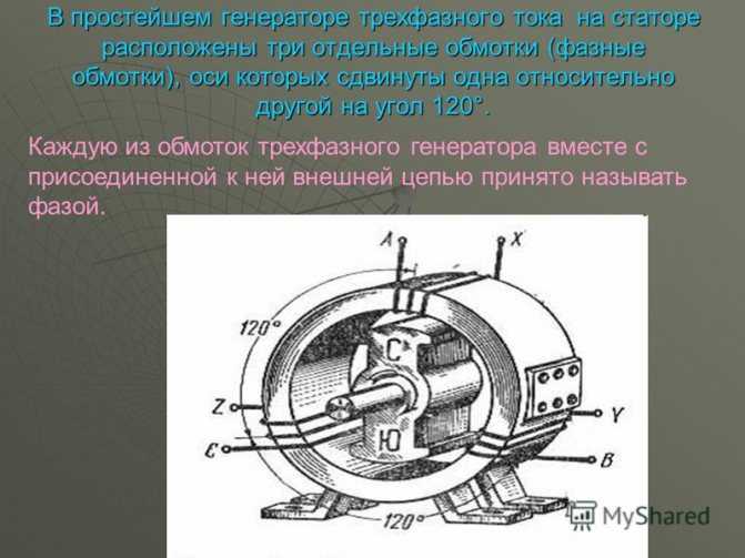 Обмотки генераторов по большей части делают трехфазными — на выходных зажимах генератора вырабатываются три синусоидальных напряжения переменного тока, поочередно достигающих своего максимального амплитудного значения. В механике редко встречается подобное сочетание движущихся частей, которые могли бы порождать энергию столь же непрерывно и экономично.