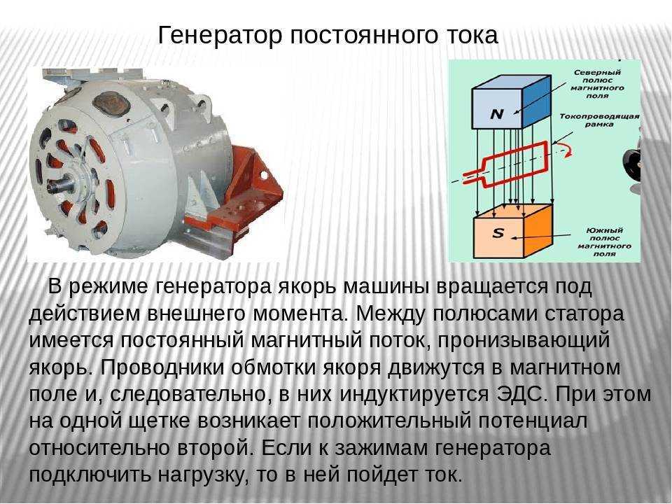 Главная специфика генераторов данного типа – прямая зависимость характеристик вырабатываемого тока от скорости вращения якоря. Благодаря этому возникает возможность точно задавать параметры выдаваемого электричества.