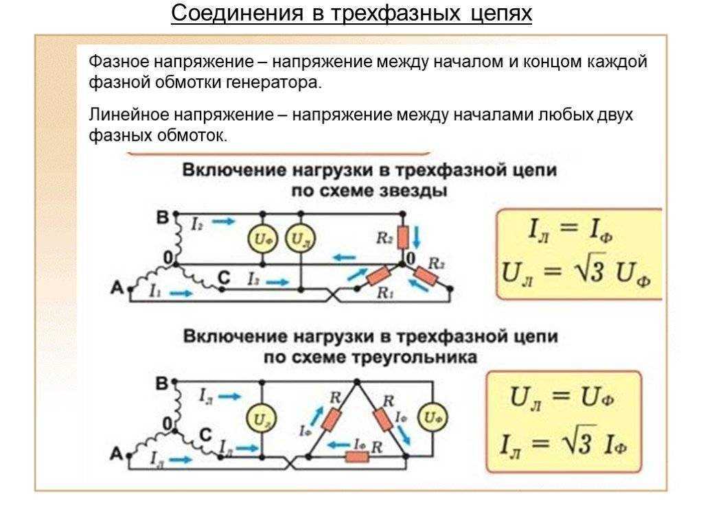 Предусмотренные ГОСТом линейные и фазные напряжения для цепей низкого напряжения связаны между собой соотношениями: