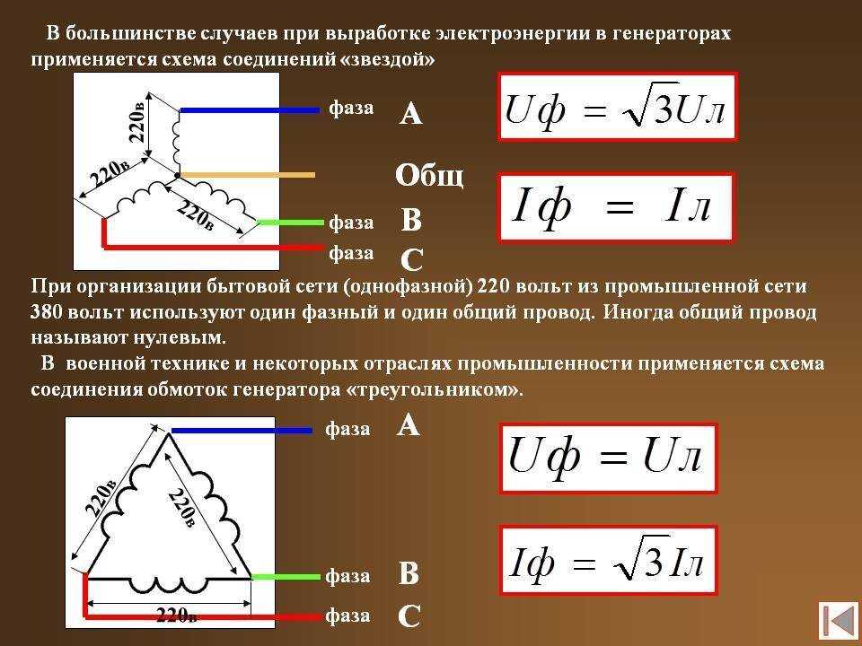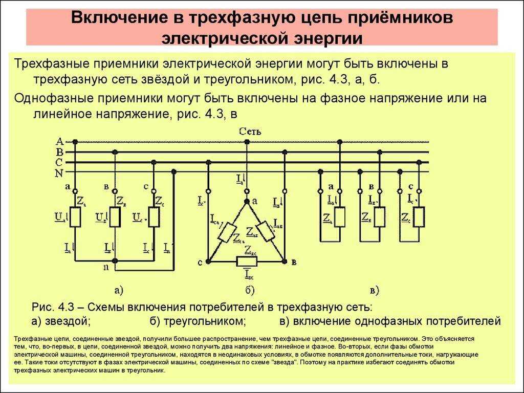 В этом случае, если обмотки генератора трехфазного тока соединить между собой особым образом («звездой» либо треугольником), то у такового тока появляются характеристики, которые комфортны в применении.