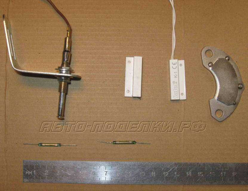 Потому выбор пал на герконы, используемые повсеместно в охранных системах, автоматике и др. Размыкаемых герконов я не встречал да и под рукой не было (верятно существуют), герконы с переключающей группой были отвергнуты вследствие низкой чувствительности. Потому использован обычный геркон с нормально-разомкнутым контактом – найти его совсем не проблема, стоимость минимальная.