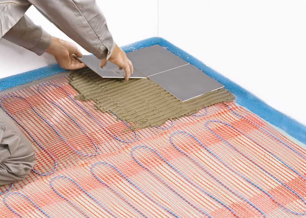 Самым распространенным финишным покрытием для данного вида пола является плитка, хотя возможна укладка линолеума или дерева. Для монтажа поверхность матов покрывают стяжкой — цементной или эпоксидной смесью с добавками. Толщина слоя, плюс плиточный клей должна составлять не менее 2 см. Для придания прочности рекомендовано на нагревательную конструкцию укладывать арматурную сетку, поверх которой заливают раствор. Включают систему только после полного высыхания раствора.