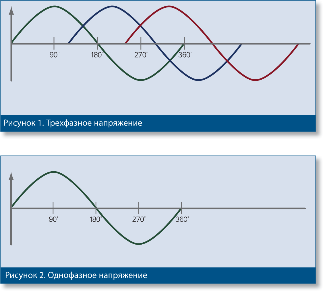 эффективность работы промышленного оборудования. Трехфазное питание выглядит