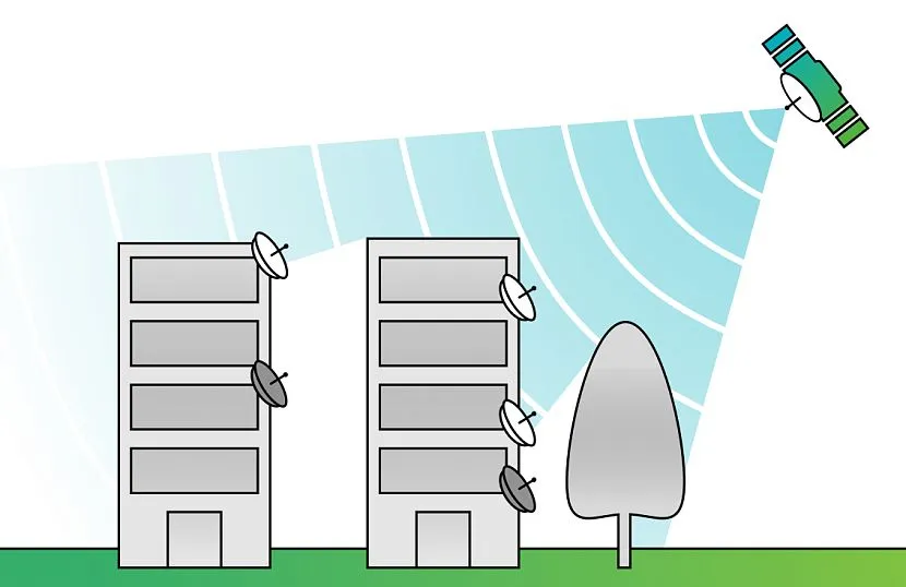 Схематичное изображение расположения спутниковой антенны относительно спутникаИсточник gs.ru