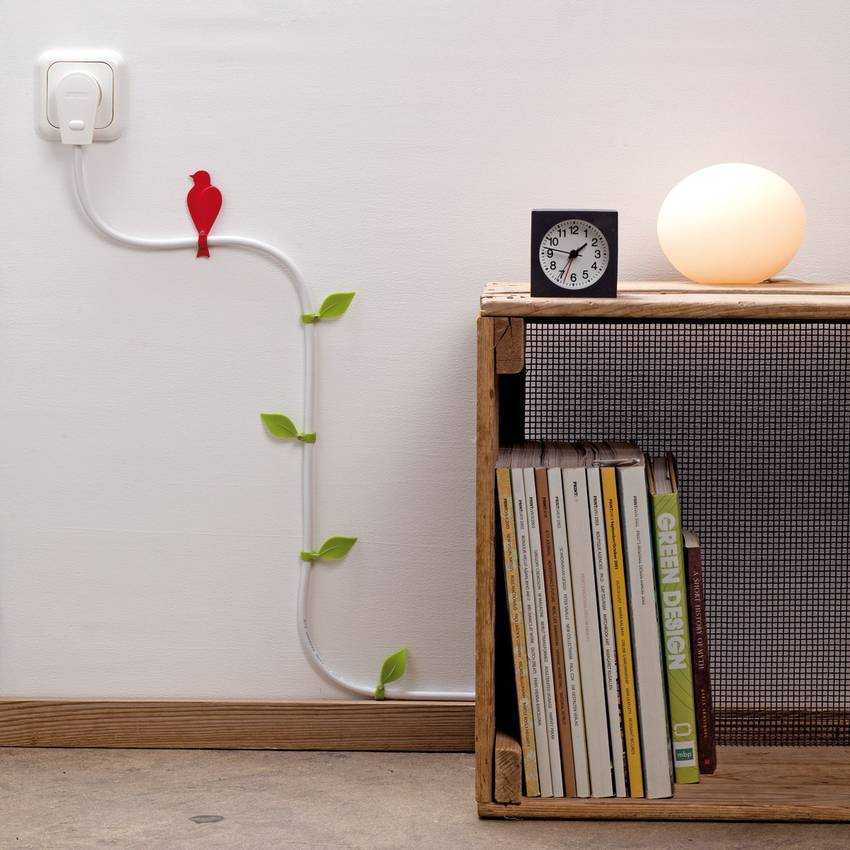 Кабели необязательно нужно делать невидимыми. С помощью дизайнерских хитростей их можно превратить в элементы декора. С этой целью используются специальные короба, силиконовые накладки различной конфигурации, разного материала изготовления и цветового оформления, а также фигурные элементы.
