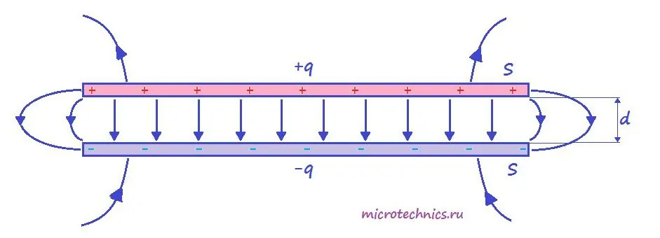 Емкость конденсатора обратно пропорциональна расстоянию между пластинами. Для того чтобы объяснить природу влияния этого фактора, необходимо вспомнить механику взаимодействия зарядов в пространстве (электростатику).