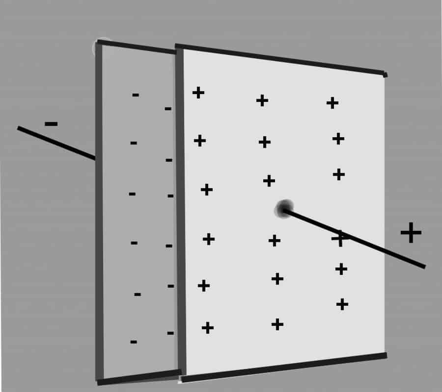 При подключении нагрузки накопленная энергия устремится через нагрузочный элемент в обратном направлении. Произойдёт кратковременный всплеск электрического тока в образованной цепи. Количество накапливаемых зарядов (ёмкость, C) прямо зависит от размеров пластин.
