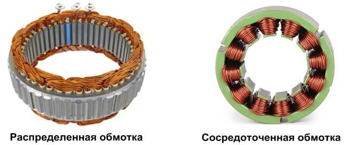 Рисунок 1. Конструкции статорных обмотокСтаторная обмотка двигателя с трапецеидальной ЭДС проще и технологичнее, за счёт этого цена такого двигателя несколько ниже.