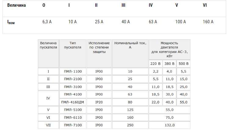 Они выпускаются от 1-й до 8-й величин по номинальному току, причем 4-я величина может иметь значение тока 63 или 80 А. Последние две величины на ток 125 (160) А и 250 А начали выпускаться относительно недавно.