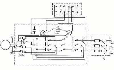 Реверсивная схема подключения трехфазного двигателя через магнитные пускатели