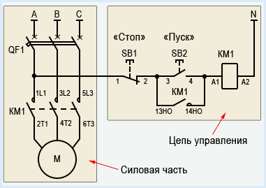 Как подключить магнитный пускатель? Нужно уделить надлежащее внимание вышеупомянутой схеме. Данная цепь поделена на две части:. Данная цепь поделена на две части:
