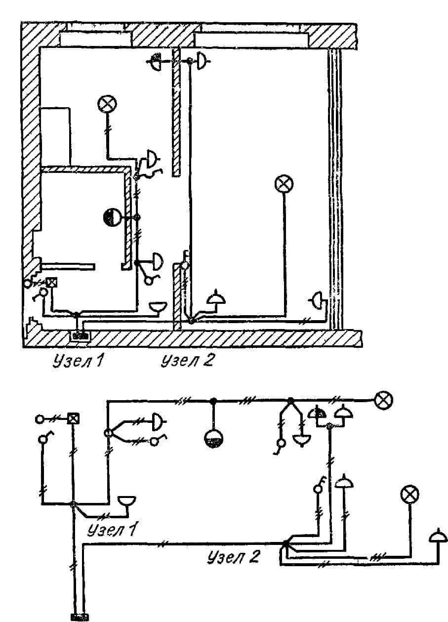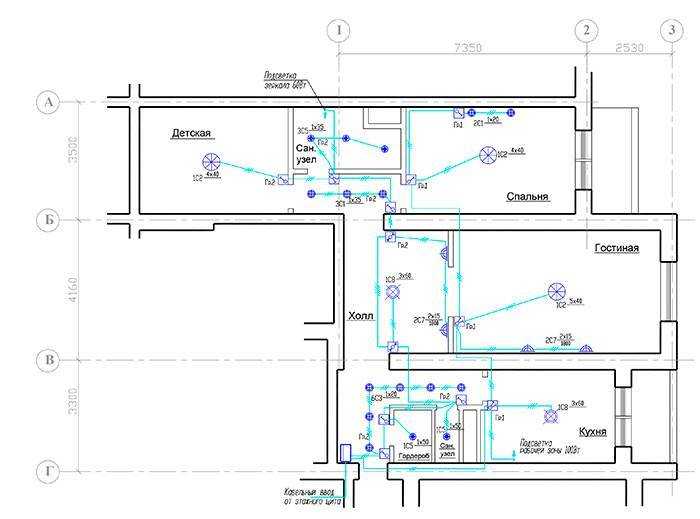 Кроме соединений и подключений, большое значение имеет распределение всех потребителей, находящихся в квартире, по отдельным группам, в соответствии с их предназначением. Обычно монтажная схема выполняется на разных листах, где каждый лист соответствует одной группе.