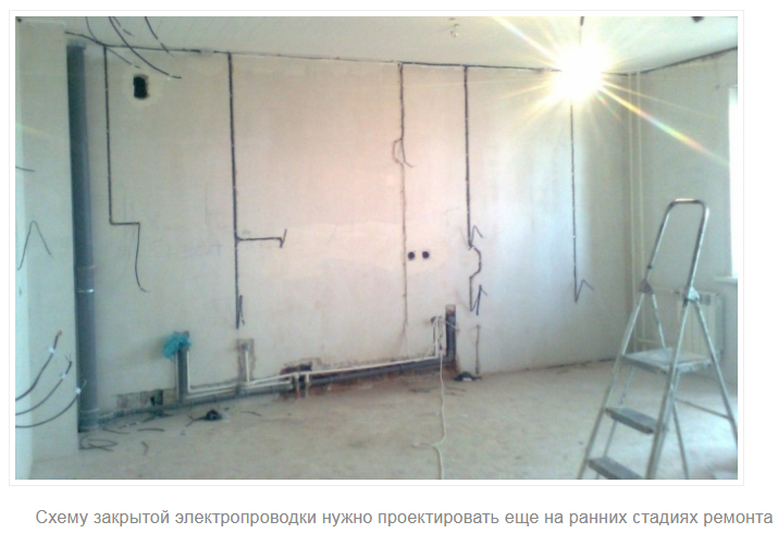 Скрытие проводки гипсокартонными панелями ведет к существенной потере объема жилых помещений. При открытом монтаже необходимо использовать специальные гофрированные трубы и кабельные каналы, изготовленные из негорючих пластмасс.