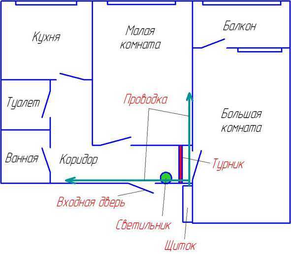 Итак, если квартира имеет стандартную планировку, можно воспользоваться уже готовой схемой разработанной для типовых квартир внеся незначительные корректировки. Она приведена на рисунке ниже.