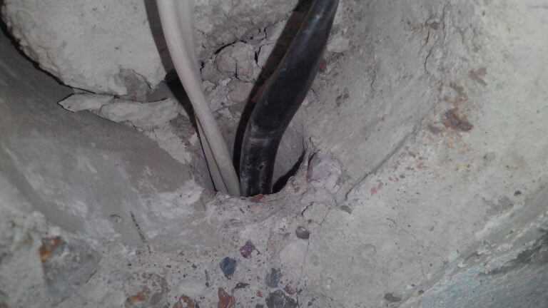 После того как вы найдете все коробки и розетки вы сможете оценить, как проложены провода. На рисунке ниже изображен внешний вид канала для проводки в нижней части потолочной распредкоробки.