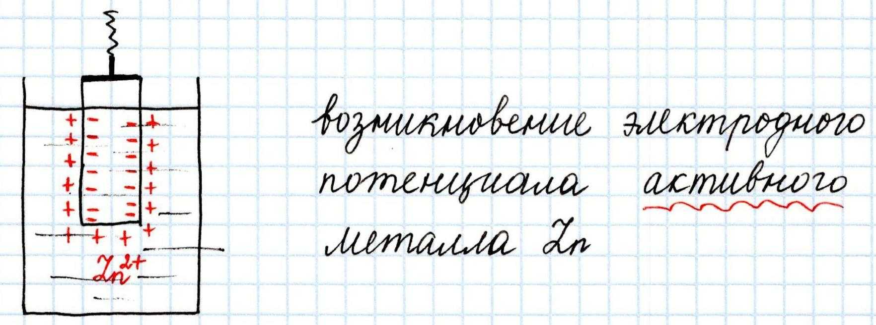 В результате протекания этого процесса возникает электродный потенциал цинка.