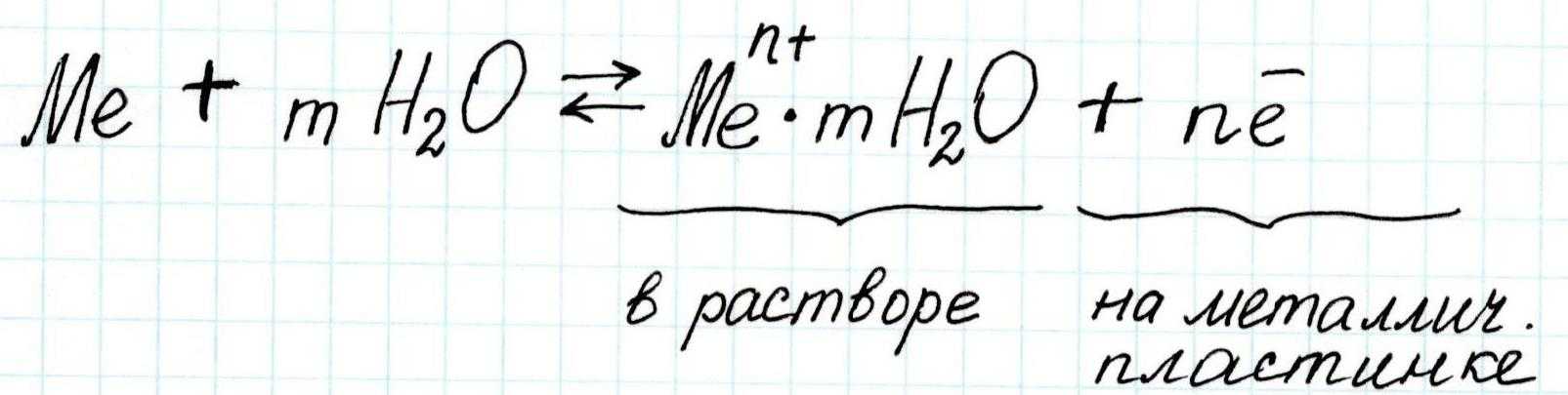 Потенциал металла в растворе его же соли в момент равновесия записывают так: