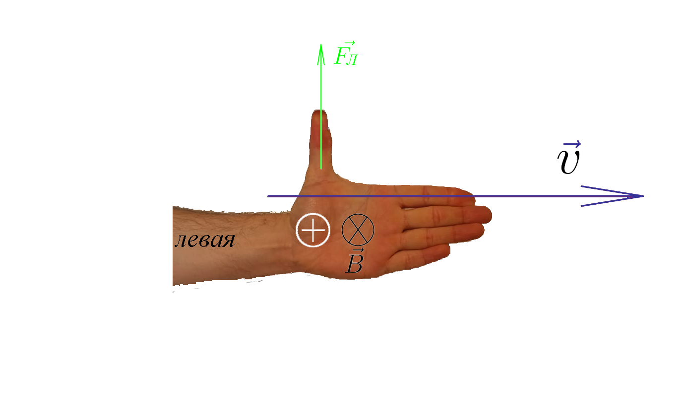 Нужно поставить левую руку так, чтобы раскрытая ладонь находилась перпендикулярно и навстречу линиям магнитного поля, четыре пальца следует вытянуть в направлении силы тока, тогда сила Лоренца будет направлена туда, куда указывает большой палец, который должен быть отогнут.