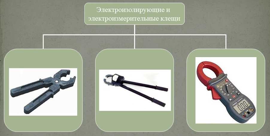 — устройства и приспособления для обеспечения безопасности работ при измерениях и испытаниях в электроустановках (указатели напряжения для проверки совпадения фаз; клещи электроизмерительные, устройства для про-кола кабеля и т.п.);