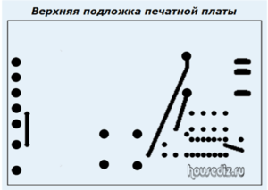 Возможное расположение электронных компонентов схемы управления, совмещенной с блоком питания бестрансформаторной конструкции представлено на картинках двухсторонней печатной платы.