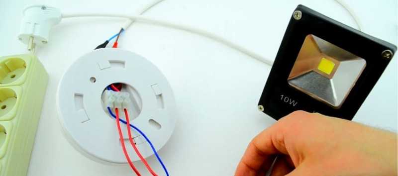 красный, отвечающий за электронагрузку, идет непосредственно к фонарю, лампе или прожектору;