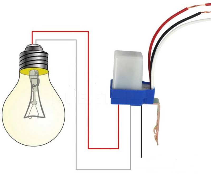 Схема подключения фотореле зависит от количества выводов. Коммутация происходит в распределительной коробке. Провода устройства различаются по цветам: