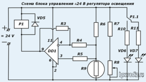 Электрическая схема автоматического сумеречного выключателя показана на рисунке 1.