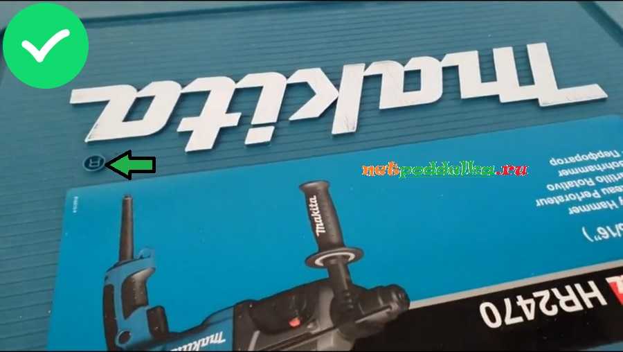 Он тоже должен быть рельефным, при этом отлит четко и качественно. Проверка наличия знака ‒ еще один способ как отличить Makita оригинал по упаковке. Так себя выдала Макита 2470 подделка.