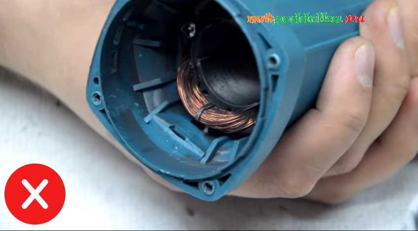 У фирменных УШМ защита от абразива есть не только у якоря, но и у статора. Это увеличивает ресурс болгарки. У контрафакта статор не имеет защиты.