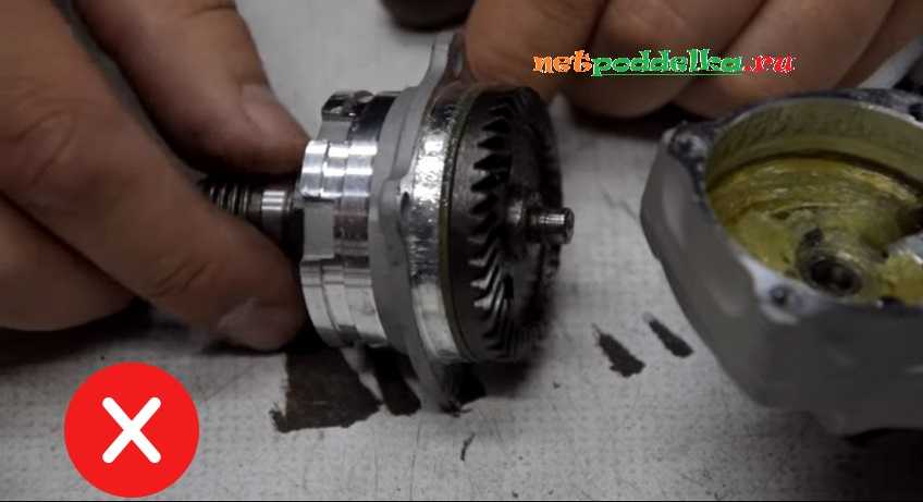 При осмотре пустого редуктора отдельное внимание стоит уделить зубьям, расположенным по окружности корпуса редуктора. В случае их истертости, редуктор не сможет выполнять свою функцию: некорректно будет работать переключатель скоростей. Для восстановления зубьев необходимо использовать болты небольшого размера, вставив их на место оригинальных пластиковых