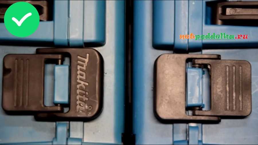 Важно! Даже при наличии тиснения необходимо проверить плавность работы защелок. Их хруст и слетание часто выдает китайские подделки Макита
