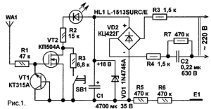 - Индикатора в виде светодиода КИПМО1Б (вместо него можно использовать и другие, например АЛ 307);