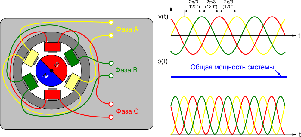 - Возможности простого получения кругового вращающегося магнитного поля, необходимого для трехфазного асинхронного двигателя.
