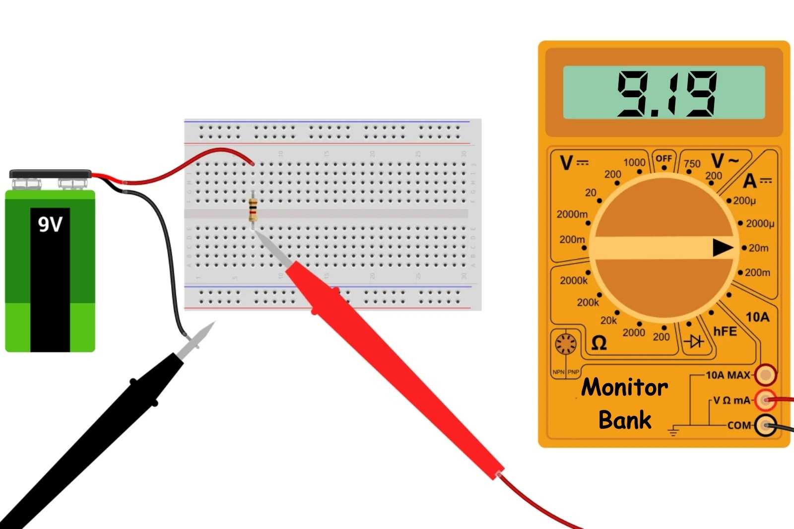 Результат измерения в указанной выше цепи составляет 0,95 мА . Почему по расчетам у нас получилась одна цифра, а на практике, после измерения тестером, другая? Не следует забывать, что измерения имеют погрешность. Как вы помните, из предыдущей статьи, все резисторы имеют погрешность около 5%, также, сопротивление щупов и самого мультиметра, и к тому же, батарея или аккумулятор может быть не заражена на все 9В! В среднем получается, что результат верный!
