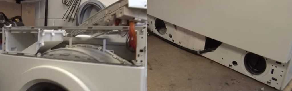 На некоторых моделях доступ к ТЭНу возможен только со стороны передней панели. Обычно к этой категории бытовых изделий относятся стиральные машины Самсунг с загрузкой белья более 5 кг. Если необходимо удалить нагреватель из такого устройства, то работы выполняются следующим образом: