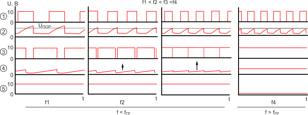 | Рисунок 2. | Диаграммы сигналов в контрольных точках устройства. |