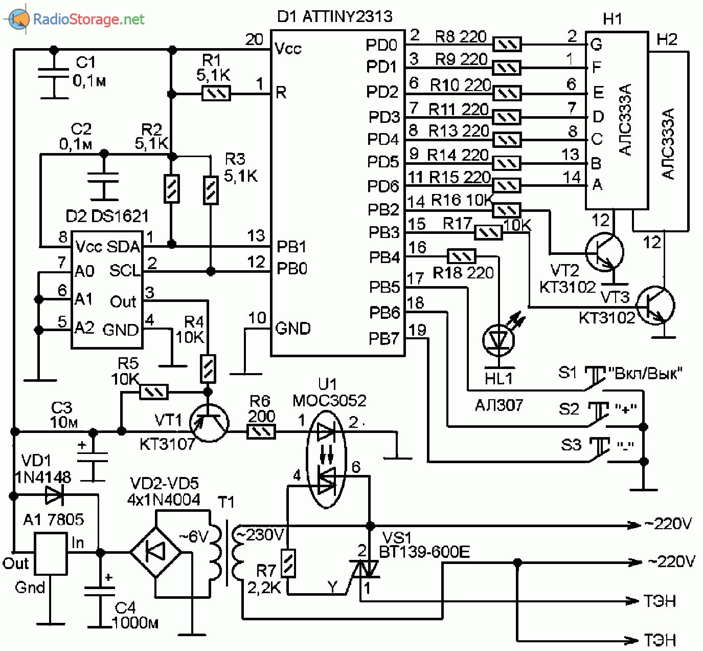 Регулятор температуры на AT90S2313 и DS1621