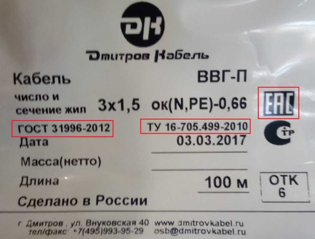 Все дело в том, что более дешевая проводка с маркировкой ЕАС никакую проверку не проходила и не соответствует заявленным цифрам. Вам просто подсовывают дешевую, но «проверенную» подделку. Специалисты не рекомендуют экономить на покупке и гнаться за низкой ценой – это все может очень плохо закончить как для вас, так и для вашего дома.