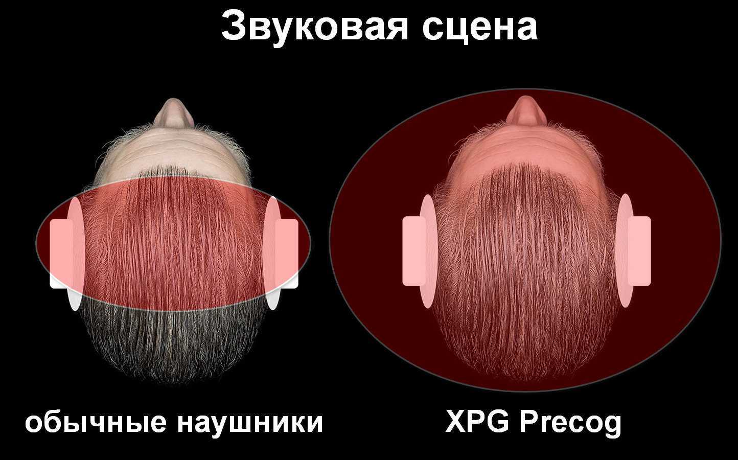 В XPG Precog звук воспринимается как из внешнего источника, идущий снаружи, а не из чашек наушников, звуковое поле значительно шире, и это дает большую глубину, что в играх немаловажно
