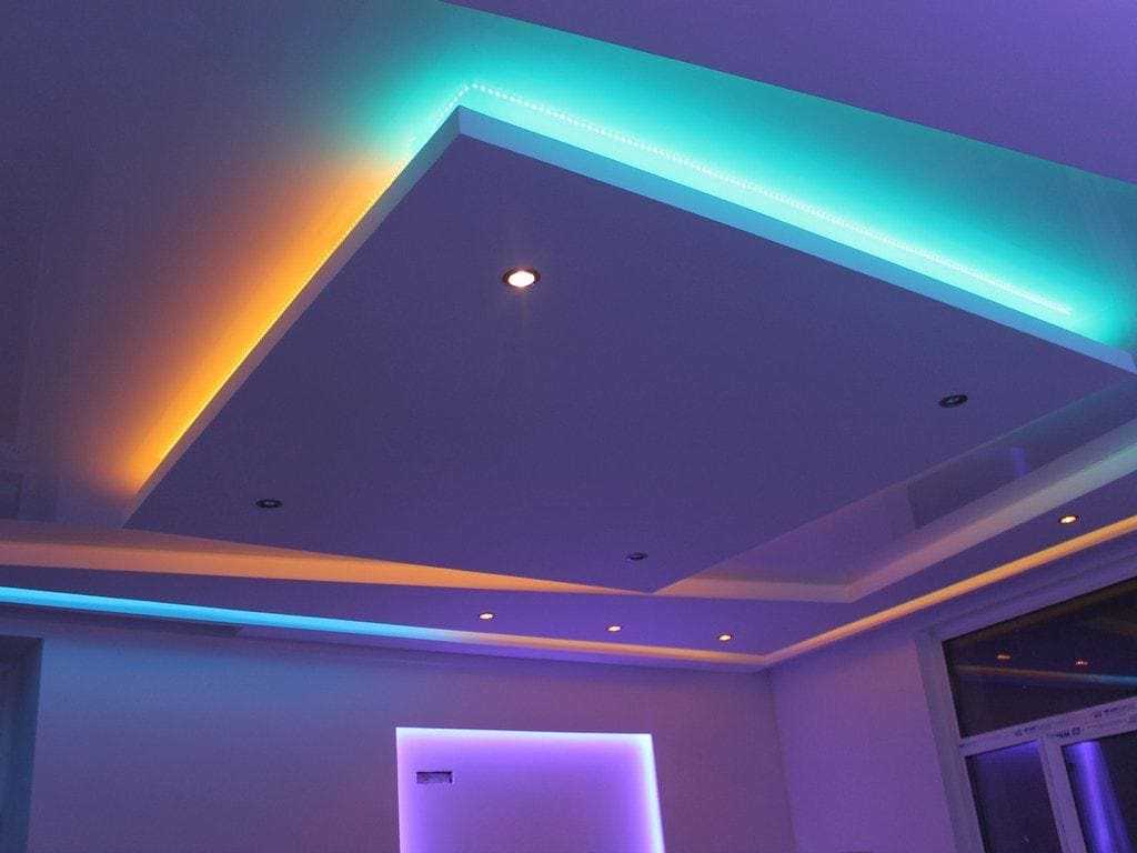 С момента начала массового производства, светодиодная лента стала очень популярным способом организации диодной подсветки потолка, так как она позволяет подчеркнуть определённые моменты в дизайне комнаты, выделить их, скрыть от глаз элементы конструкций и крепления. Также она позволяет организовать в помещении приглушенный мягкий свет, который будет удобен при просмотре кино, во время вечеринки или при подготовке ко сну.
