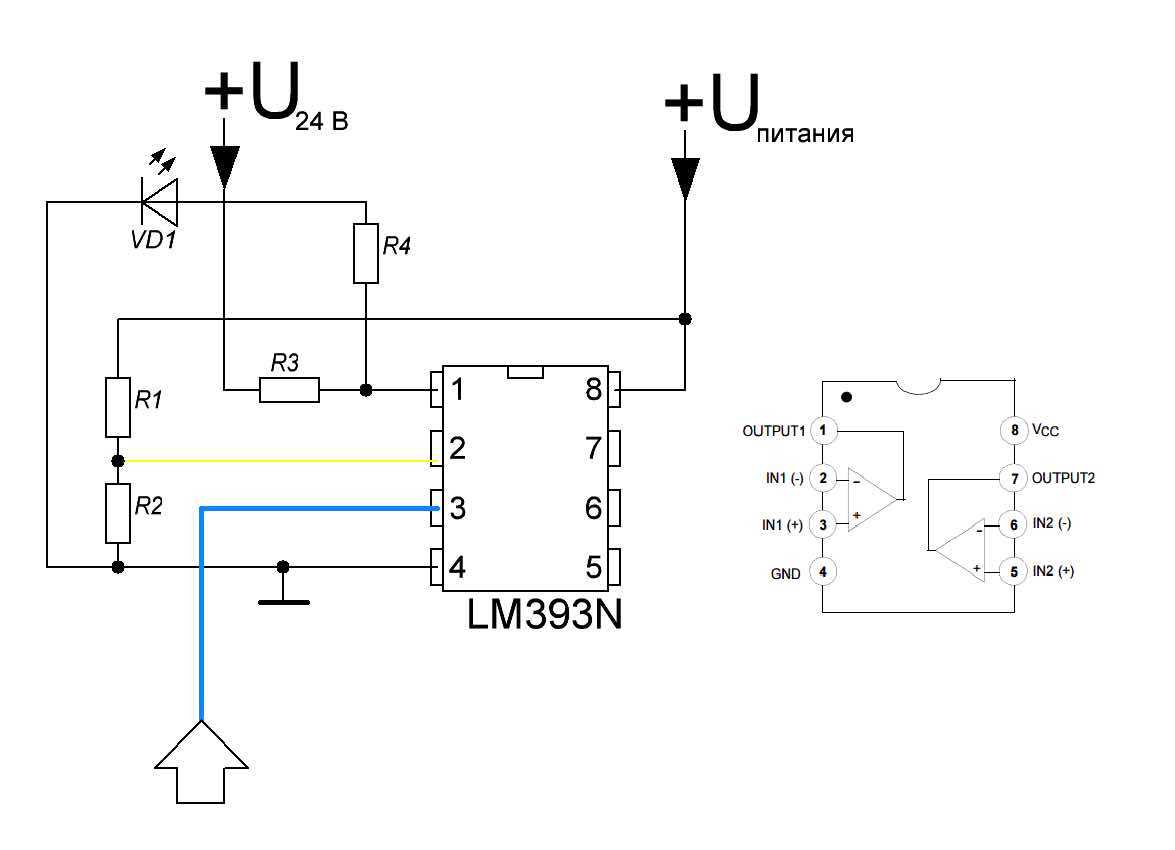 Необходимо обратить внимание, что данный компаратор имеет выход с открытым коллектором